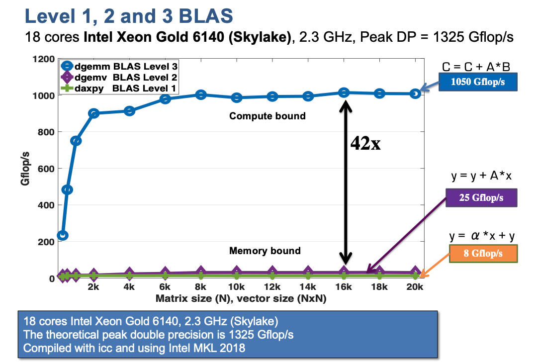 But \(\langle \mathbf{A}, \mathbf{B} \rangle = \langle \text{vec}(\mathbf{A}), \text{vec}(\mathbf{B}) \rangle\). The latter is level-2 operation with \(O(mn)\) flops.