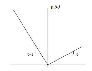 L(\beta) = \frac{1}{n}\sum_{i=1}^n \rho_\tau (y_i - \mathbf{x}_i^T \beta).